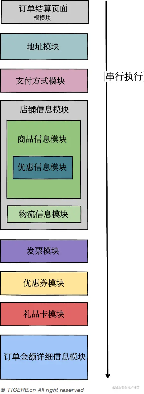 但是,我们很清楚有些模块之间并没有依赖,且该模块涉及服务远程调用等阻塞操作,比如: