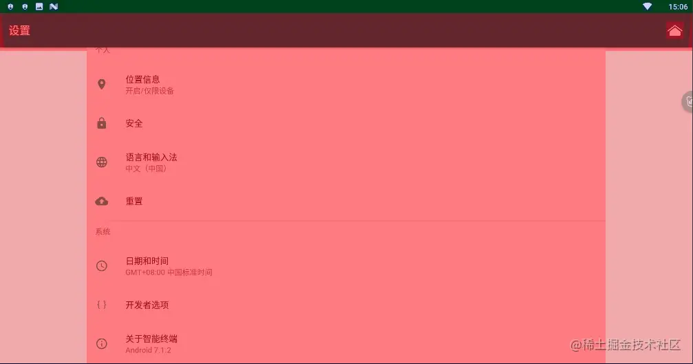 开启之后,打开需要检查的应用界面,系统会提示现实过度绘制的区域。就像这样,看来Google自己的设置界面也有待优化呀!