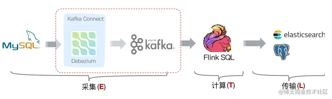 · 如果你已经有 Debezium/Canal + Kafka 的采集层 (E),可以使用 Flink 作为计算层 (T) 和传输层 (L)