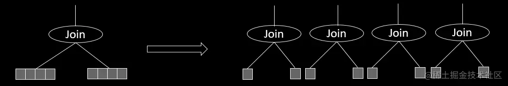 并行计算的原理很简单,将原本一个线程的工作平均分配到多个线程来完成,示意图如下图所示:图示中的关联操作,原本需要操作四份数据,通过并行度为4的并行计算后,每个子线程仅需要处理一份数据,理论上性能提升可以达到4倍。