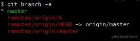 或者使用git branch -a(添加-a参数可以同时显示本地仓库和远程仓库的分支信息):