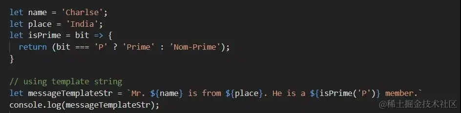 模板文字(或模板字符串)允许嵌入表达式。它具有独特的语法,也就是字符串必须用反引号(``)括起来。模板字符串可以包含动态值的占位符。这些可以通过美元符号和大括号(${expression})进行标记。
