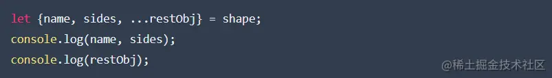 像这样进行解构,我们就获得了名称,在一组变量的两边,并且其余部分在另一个对象中。