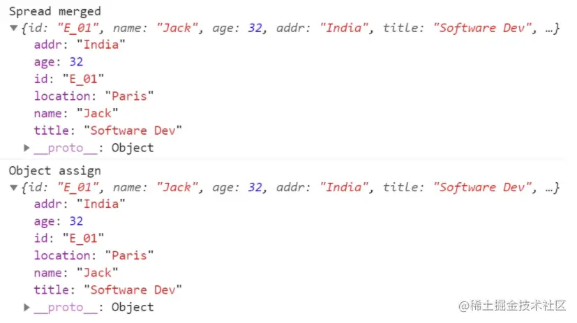还有另一种执行此合并的方法。使用Object.assign()。你还可以这样做: