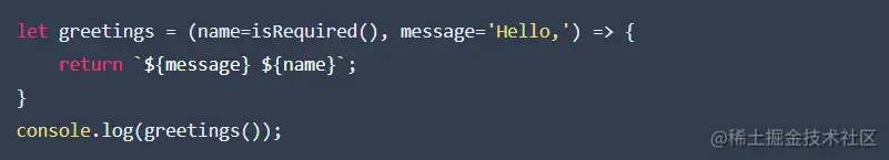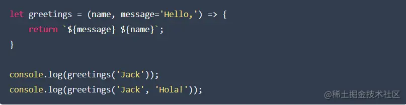 有一种简单的方法,可以在定义参数时将默认值传递给函数参数。这里举的例子是,我们将默认值Hello传递给greetings函数的参数的message。