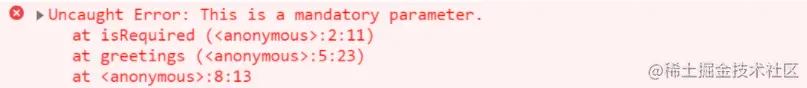 扩展默认参数技术,我们可以将参数标记为必需。首先定义一个函数,用错误消息抛出错误,