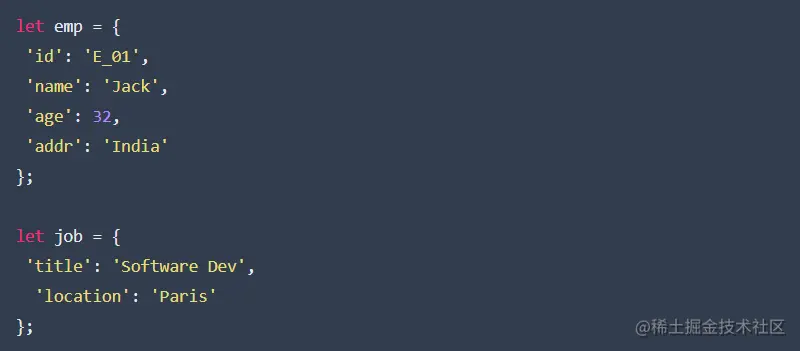 你可能需要将两个对象合并在一起,并创建一个更好的信息对象进行使用。你也可以使用(...)点差运算符进行同样的操作。(是的,三个点!)