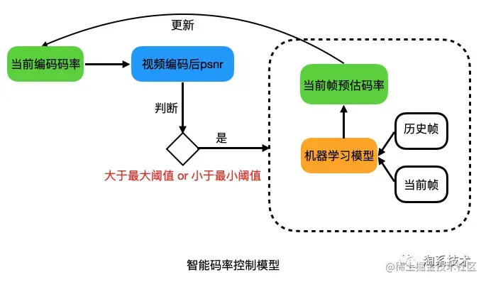 智能码控是淘宝自研的码率控制算法,普通ABR或CBR码率控制为了追求目标码率,在低复杂度场景浪费了大量码率,根据人眼主观质量模型,当psnr高于一定阈值后,再提高质量,人眼无法察觉,只会消耗过多码字。我们使用机器学习方法,根据17种历史编码信息和待编码帧的复杂度,预估出待编码帧在质量阈值以上的量化系数,并限定在ABR目标码率以下,确保每个帧都能以最合适的码率编码。