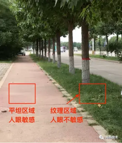 另一方面,空域上各块之间的重要程度也是不一样的。人眼是视频的最终观察者,从人类视觉系统出发,不同的块在人眼中的视觉冗余不相同,比如人眼存在视觉掩蔽效果,它对显著纹理和强边缘附近的噪声不敏感,将码率更多分配向人眼敏感的平坦区域,可以得到更好的主观质量。在编码器中,我们通过计算块的方差能量及边缘能量作为块的代价,研究不同块能量和人眼感知程度之间的关系,估计出块间码率配分对人眼注意力的影响,合理分配码率到更重要的纹理块,提高视频感知编码效率。