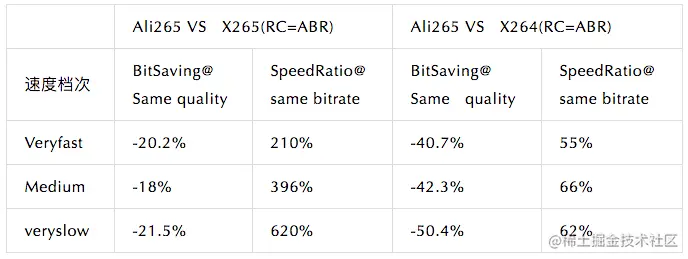 medium速度档次有36%码率节省。