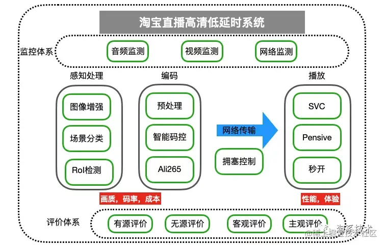 围绕着提高问题发现、问题处理效率的出发点,具备数据采集、存储、异常事件收集、智能告警、告警数据运营、可编码诊断平台、故障自动化处理、变更联动等能力。我们搭建了一套基于淘宝直播的全链路监控体系,从音频,视频,网络这三个方面入手去解决目前淘宝直播全链路的现有问题以及将来可能出现的问题。不断去优化整套高画质低延时系统。