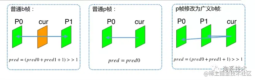 比如在参考帧模块,有较多的工具可以提高参考效率。首先长期参考帧和广义B帧等帧类型可以提高预测质量,长期参考帧针对背景很少发生变化的直播场景,它有效减少信息经过多帧传递带来的损失,引用长期参考帧可将平均EV提高大概0.25dB。而传统P帧改为广义b帧,采用双向预测取代单向预测从而降低噪声,光照变化,采样误差等预测残差源。