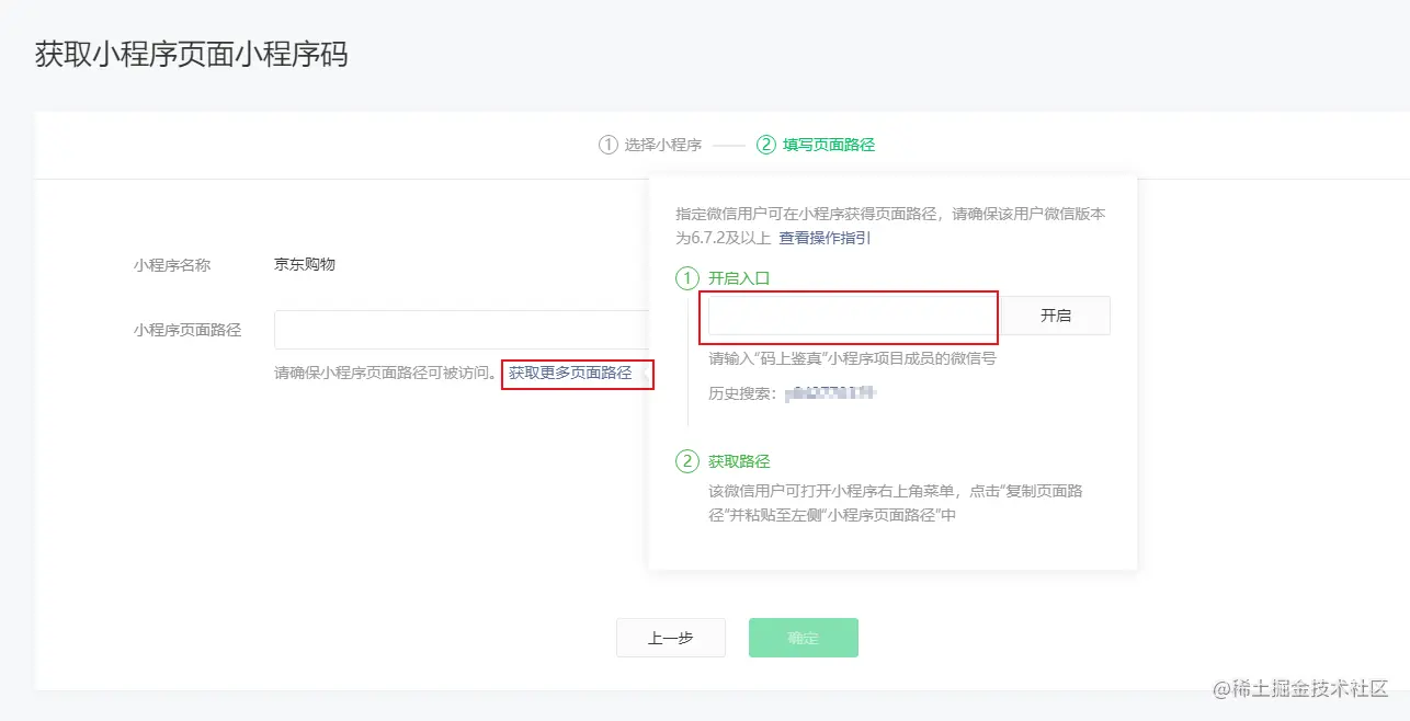 获取更多页面路径 -》 输入你自己的微信账号 -》 开启