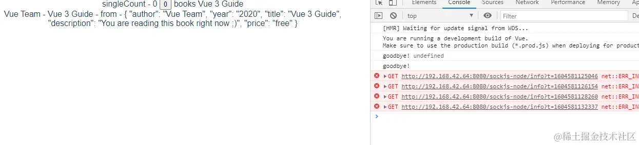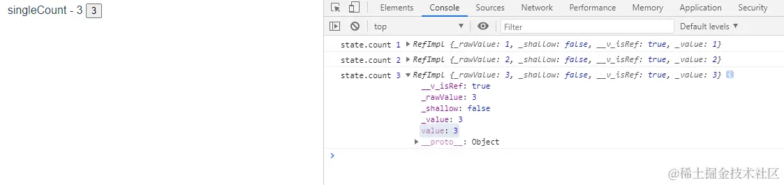 下面代码我们可以看到,将一个 reactive([ref('Vue 3 Guide')]),然后根据 books[0].value 进行访问: