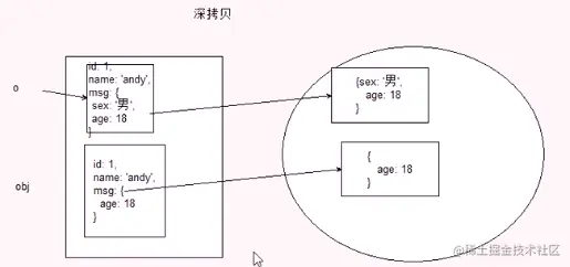 console.log(o) //结果 {id: 1, name: "andy", msg: {…}}