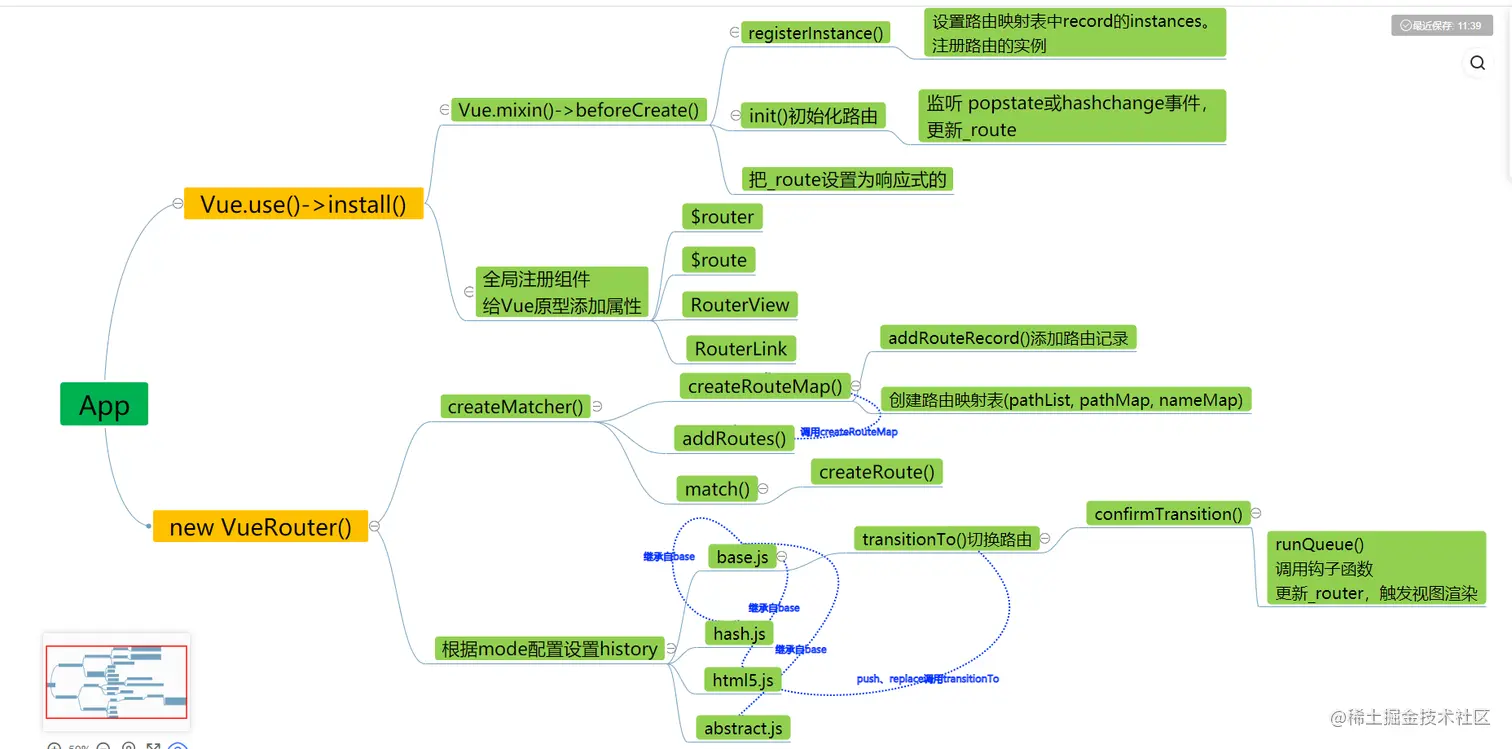 VueRouter源码的阅读笔记就写到这里了,虽然RouterView和RouterLink组件的源码没完全看完,但不影响对VueRouter原理的理解,所以这里就不写出来了[狗头保命]。即使没有逐行的去理解,但整体上算明白了VueRouter的原理了。