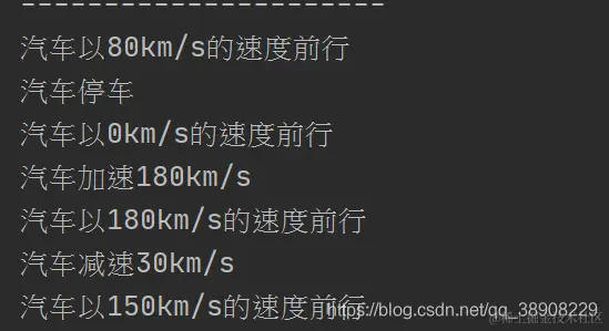 System.out.println("汽车以"+getSpeed()+"km/s的速度前行");