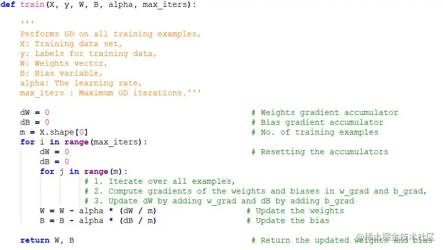 在对初始参数进行假设后,我们计算了成本函数。以降低代价函数为目标,利用梯度下降算法对给定数据进行参数修正。下面是它的数学表示:
