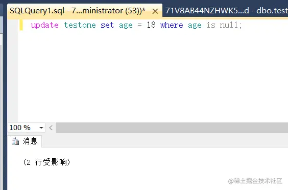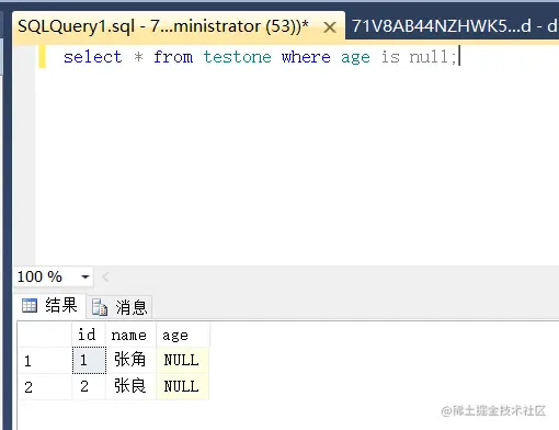 判空查询 查出列为null的 与列不为null的 ifubing 2020-11-05 99 阅读1分钟 原始数据 查询不为空的 select * from testone where age is not null; 查询为空的 select * from testone where age is null; 找出年龄字段为null的 并给与它默认值 update testone set age = 18 where age is null;