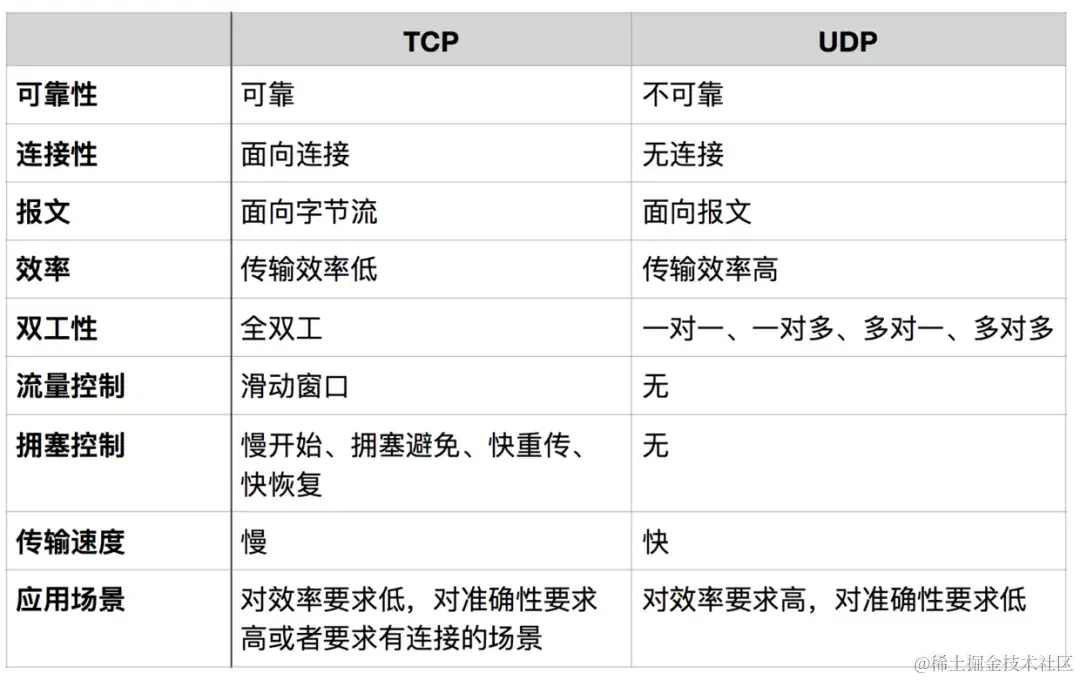 TCP/UDP都是是传输层协议,但是两者具有不同的特性,同时也具有不同的应用场景,下面以图表的形式对比分析。
