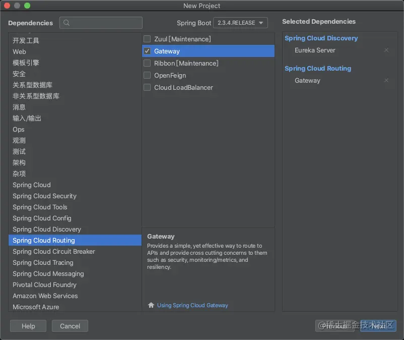 1.1、新建项目,引入gateaway依赖,引入eureka依赖,不用引入web