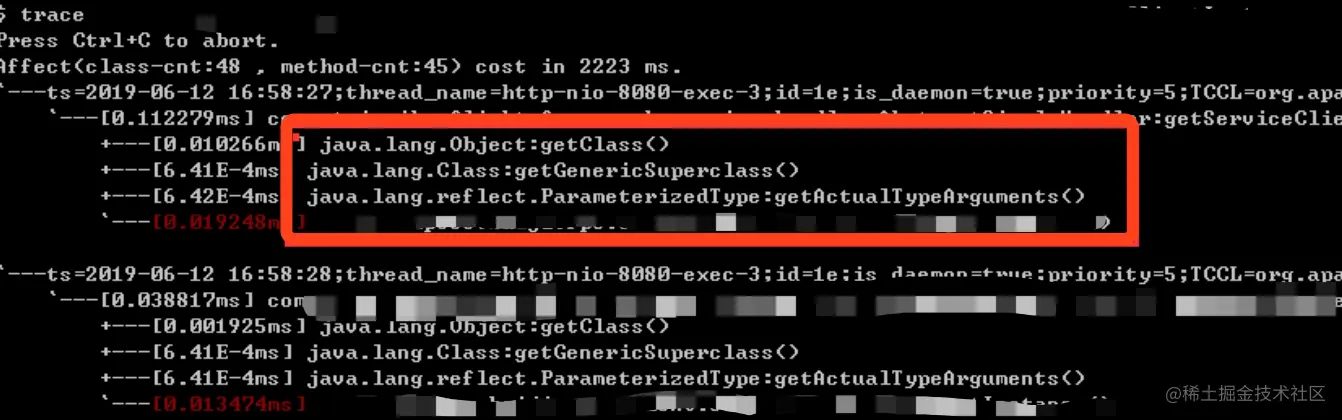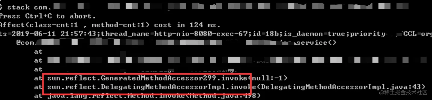 这些反射类被频繁的加载和卸载是不正常的,通过Arthas诊断工具(Java在线诊断利器之Arthas)观察调用链发现每次调用接口都是通过反射的方式实现的。