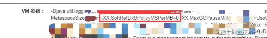 而SoftReference是否被回收又跟SoftRefLRUPolicyMSPerMB参数的值有关系,查看我们线上JVM的配置发现XX:SoftRefLRUPolicyMSPerMB这个参数设置的是0