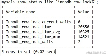 Innodb_row_lock_time:从系统启动到现在锁定总时间长度;