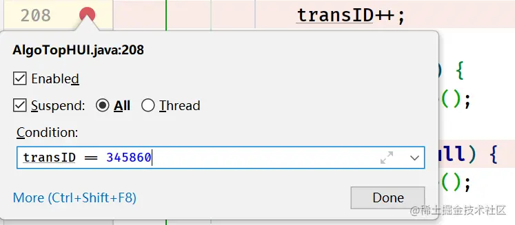 直接找到想要添加条件的那一行代码处打好断点,在断点上右键,可以做如下设置: