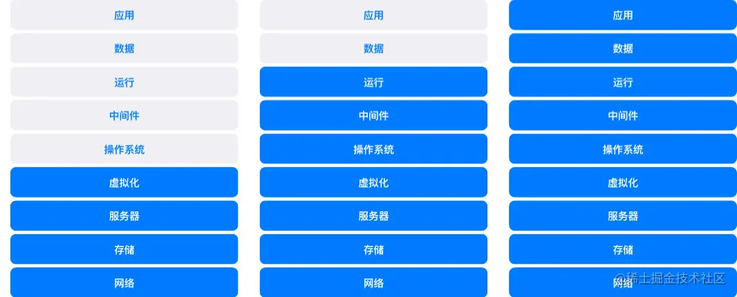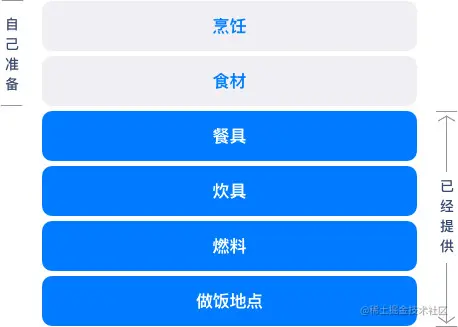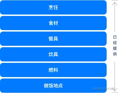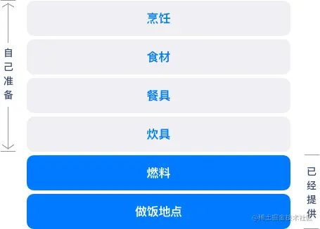 第二个是平台(Paas)这其中**炊具是操作系统,餐具则是中间件**。你的公司购买了平台服务,所以除了基础设施,服务商还会通过中间件提供给你各种开发使用的解决方案,节省时间和资源。