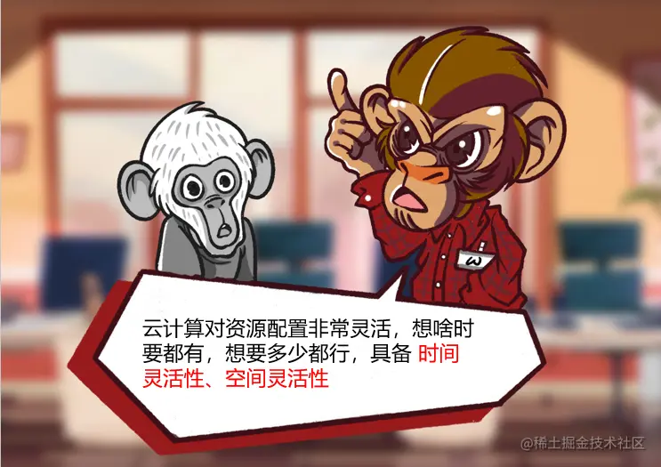 云计算可以任何时候满足你所需资源需求, 比如:你晚上11点,想要一个8g内存、4核cpu、100g硬盘的空间,只需要在云平台上轻轻一点就配置好了,无需你自己去买物理机、装系统以及配置网络环境,并且每个人的资源都是虚拟化,独立化的。