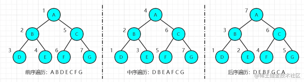 其中前序、中序和后序遍历本质上可以认为是深度优先遍历(DFS),而二叉树的层序遍历本质上可以认为是广度优先遍历(BFS),这里不作详细介绍,想了解的朋友可以期待下一篇文章哦~