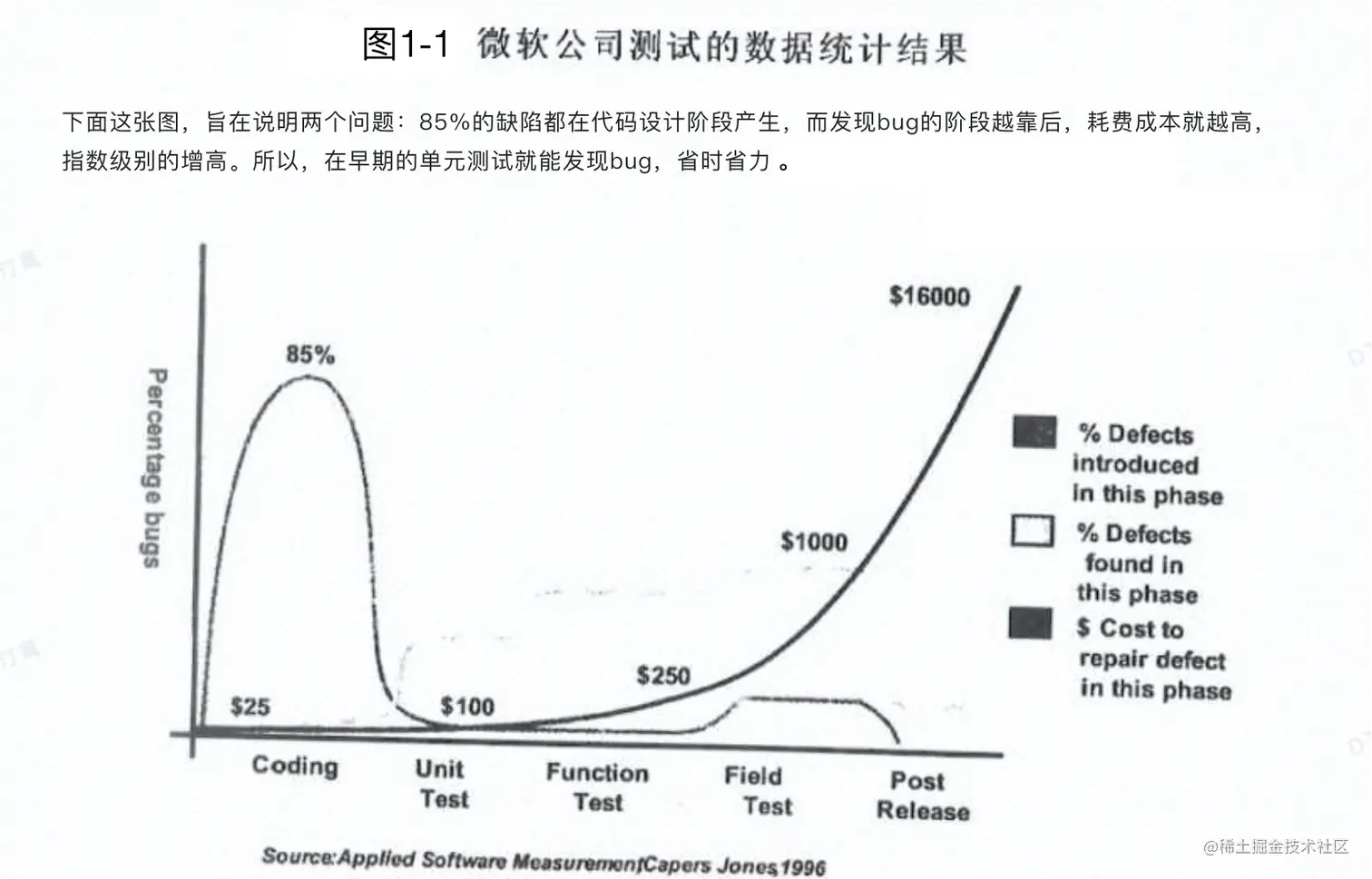 图1-1(微软公司测试的数据统计结果),笔者主要提炼为三个信息: