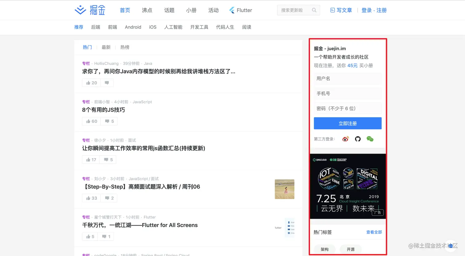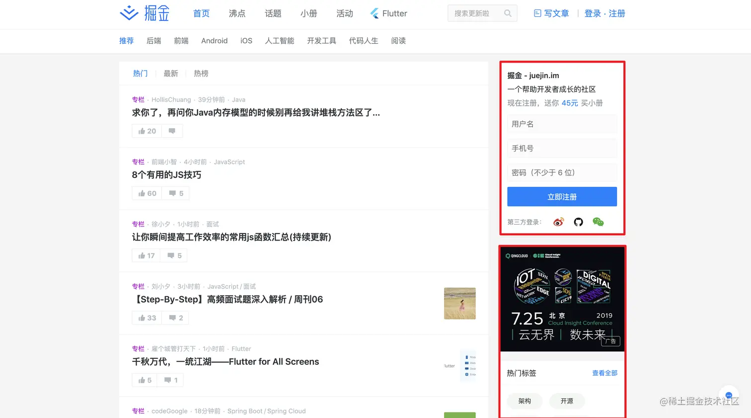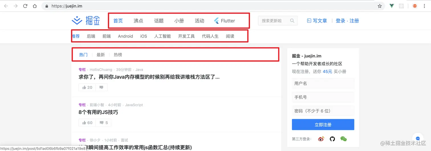 比如像稀土掘金网站上