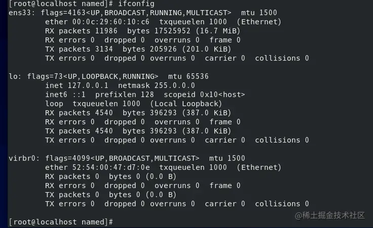 检查主配置文件语法;在linux中输入named-checkconf,若无报错即为配置正确。