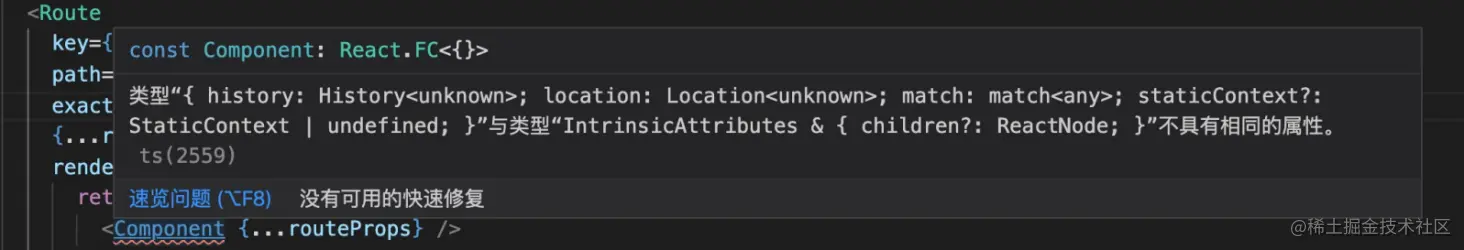 所以IRouteItem中将component:React.FC改写成写入React.ComponentType<RouteProps>;