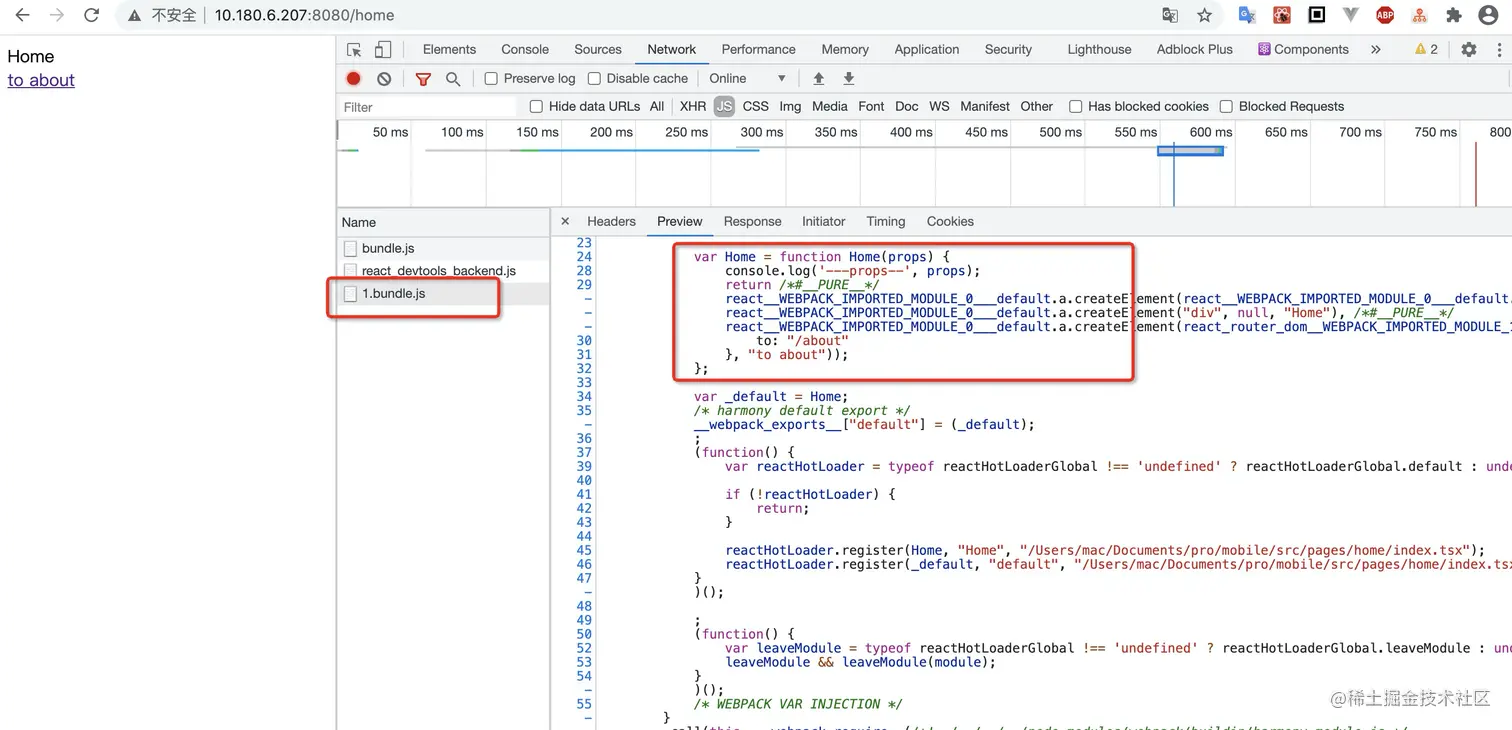 浏览器中发现Home和About已经被分别打包成了