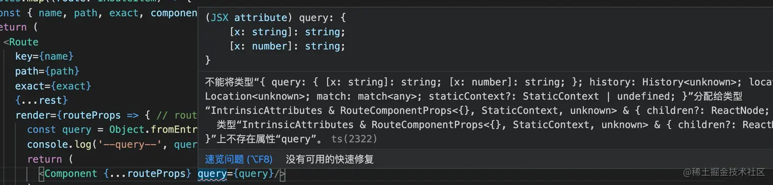 那是因为Route的Component的Prop上并没有query,可以查看RouteComponentProps源码👇