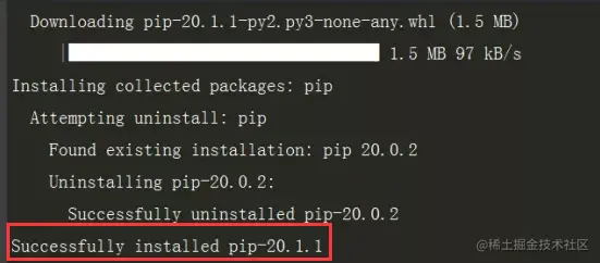 出现红色框中的内容就证明我们的pip工具版本升级成功了