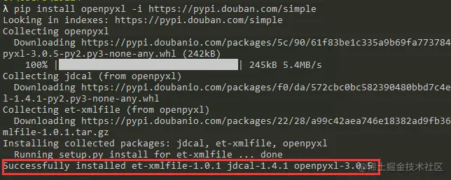 pip install openpyxl -i https://pypi.douban.com/simple