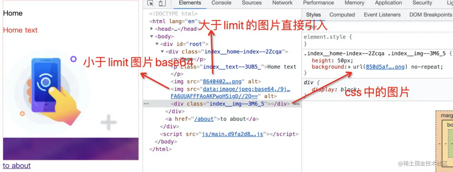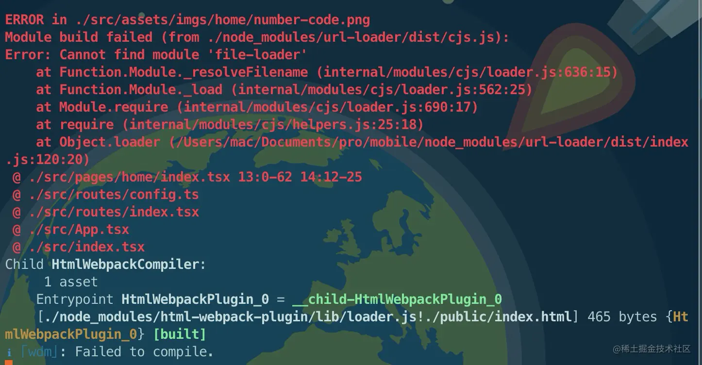 在Home页面中引入一个png,和引入less一样,webpack不能处理png需要加loader处理