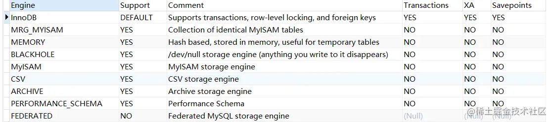 CVS(3个文件) 它的表是逗号分隔的文本文件。csv表允许以csv格式导入或转储数据,以便与读写相同格式的脚本和应用程序交换数据。因为 csv 表没有索引,所以通常在正 常操作期间将数据保存在 innodb 表中,并且只在导入或导出阶段使用 csv 表。