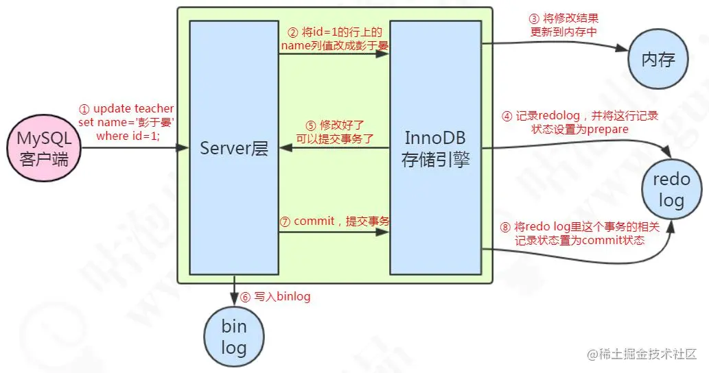 - 然后调用存储引擎接口,设置 redo log 为 commit 状态。更新完成。