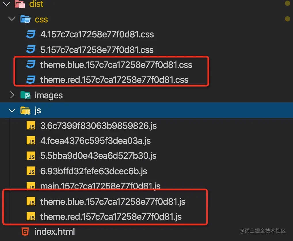 查看页面才发现把blue和red的css全引入了,生成的样式js也全引入了,这还得了!!