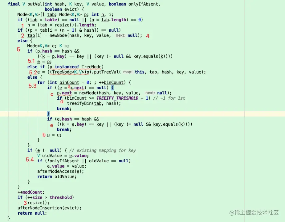 - 5.4 如果e不为null,即替换了旧的元素,由于e的value还是旧的值,就将新的value赋给e