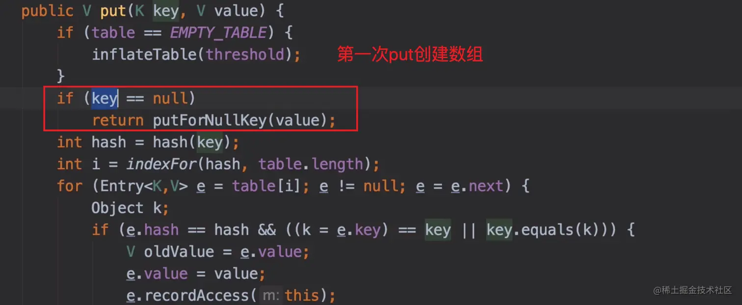 - 内部数组什么时候创建的? -> 第一次put的时候创建的