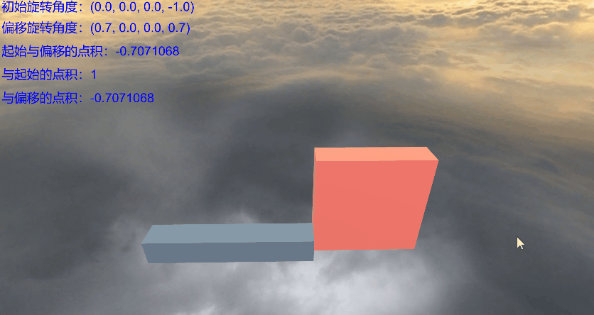 由上面动图可见,当物体旋转到一定角度时,欧拉角转换的四元数与直接获取的四元数相反。转动到另一些角度时,欧拉角转换的四元数等于直接获取的四元数。