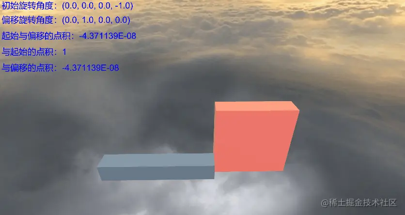 当物体正方向旋转大约90°的时候,当前位置和初始位置的点积是0.7;