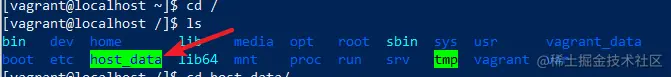 通过 vagrant ssh 登录 CentOS 系统后,通过 cd / 进入根目录,就会看到主机所共享出来的目录: