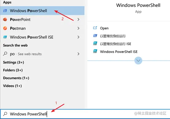 打开 PowerShell(win10 自带,直接在搜索框中可以找到)